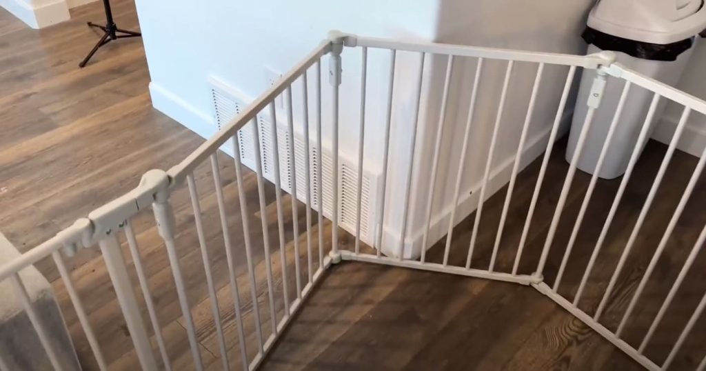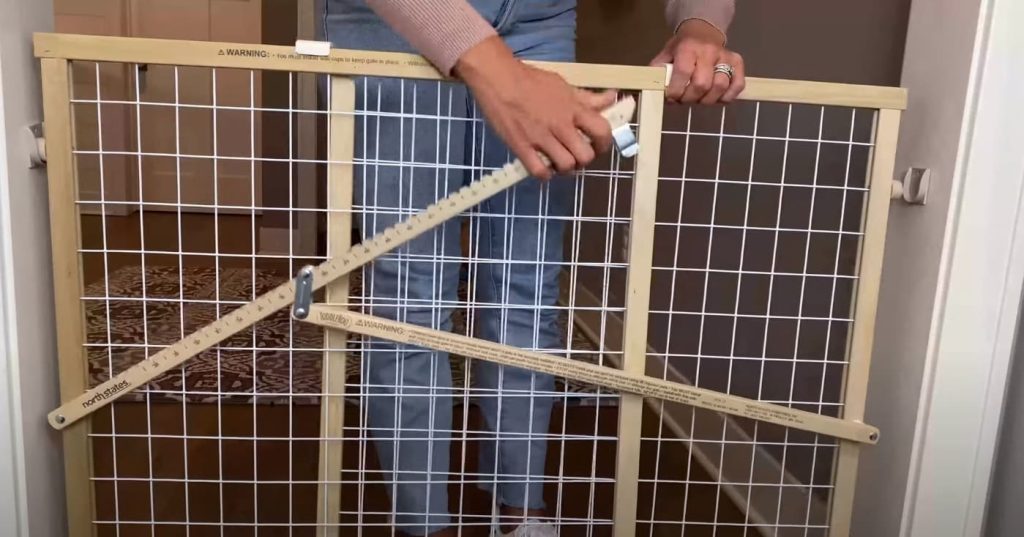 This Mesh Wooden Baby Gate offers a sturdy and adjustable solution to keep your little ones safe, with its durable American hardwood construction and versatile fitting for openings between 29.5″ and 50″ wide, providing peace of mind for parents.